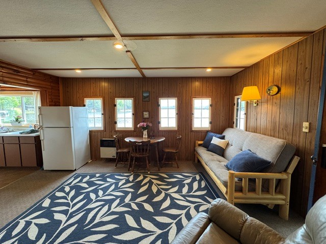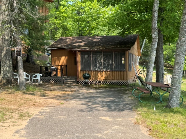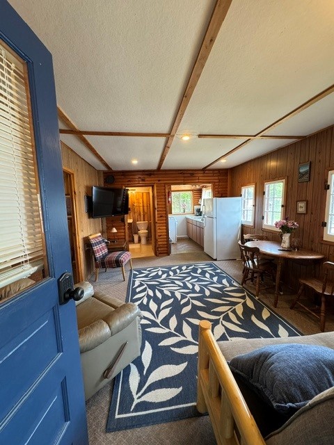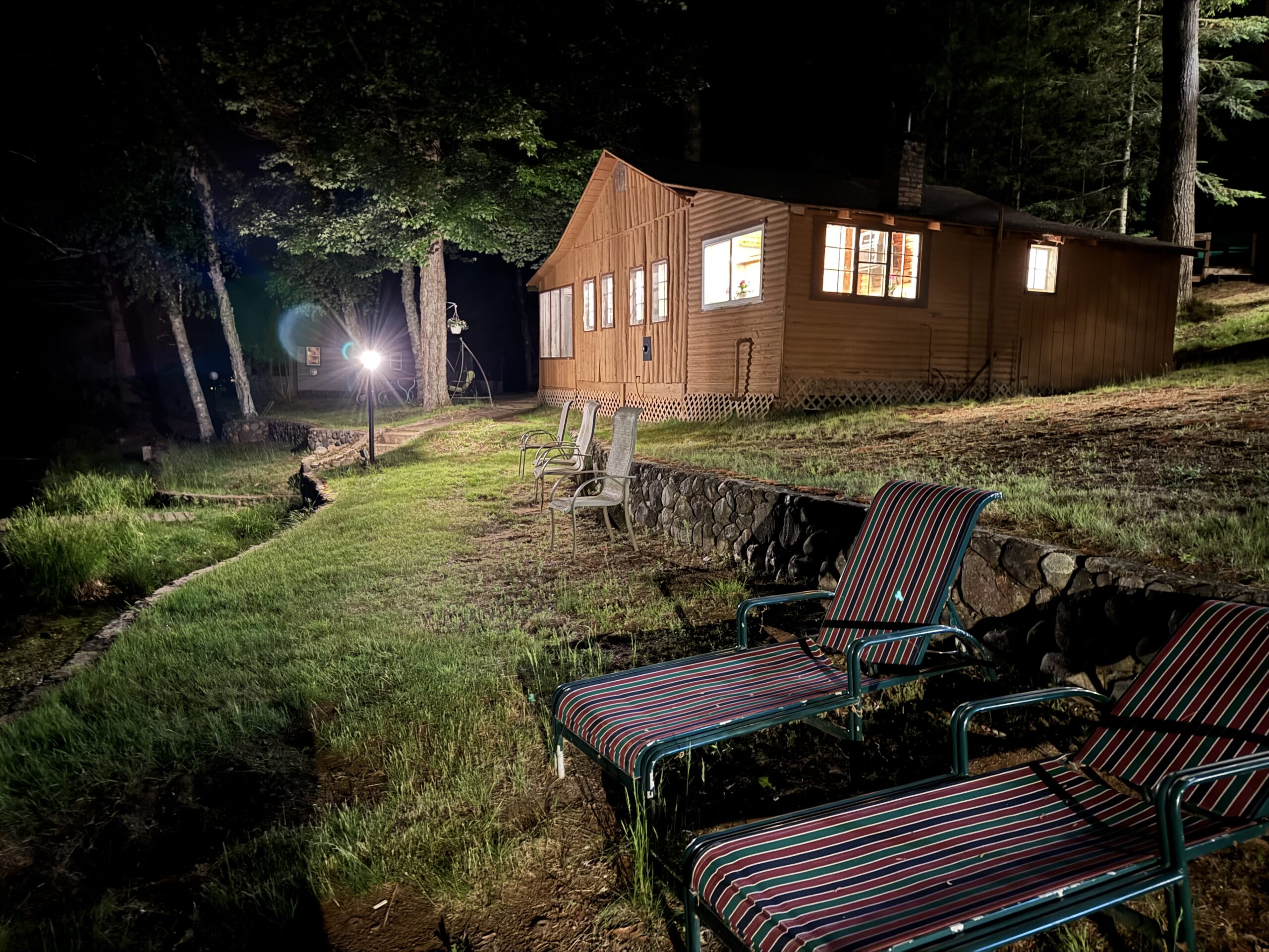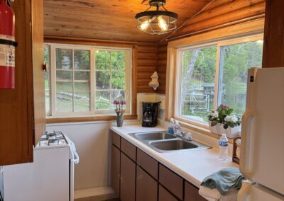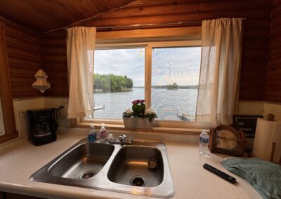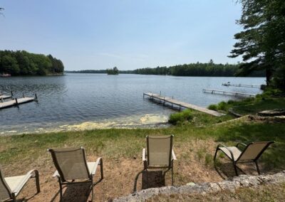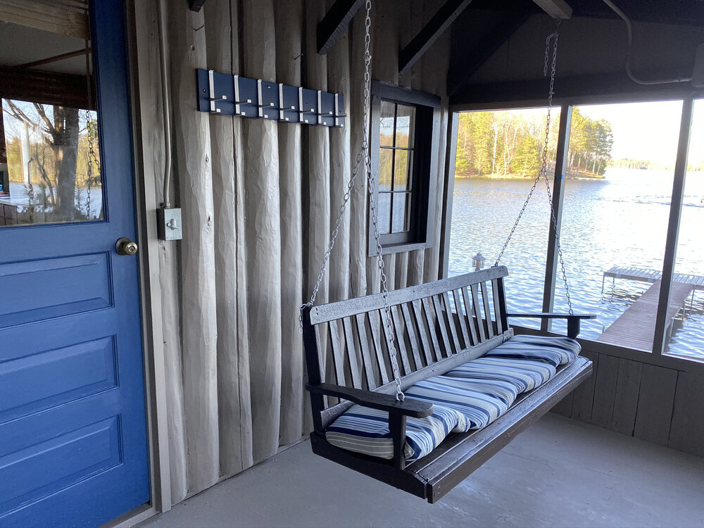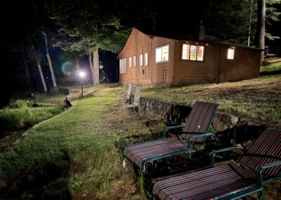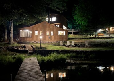 Our Lower Pine lakeside cottage has two bedrooms (double size beds), a private bathroom with full tub and shower, screened porch, campfire pit, and fully equipped kitchen. As well as an open living room with a table and 50” 4K Smart TV.